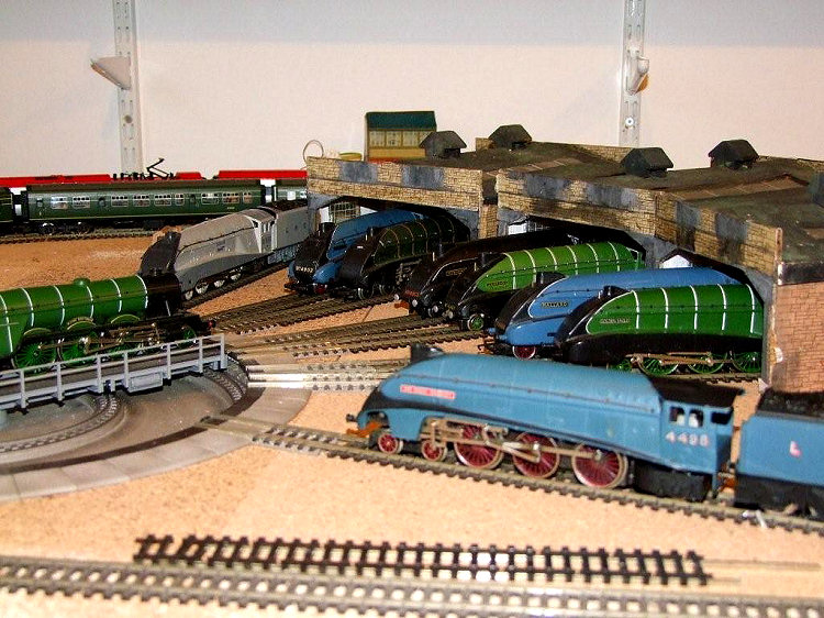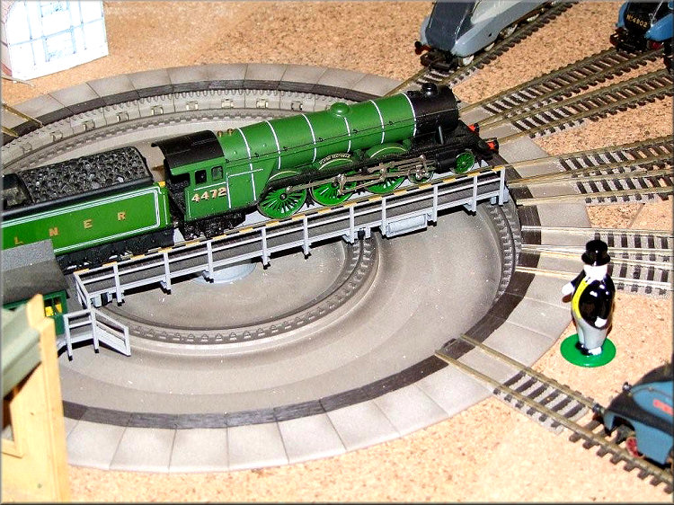Malcolm Pugh's 3rd update ..... July 2008 The original design for Top Shed included a turntable, which was already to hand. This was fitted, but didn't work as reliably as hoped, nor did a replacement. So the only option was to buy an expensive turntable, which Andy and Elaine did on their visit to an model railway auction in Munich in late 2007. A Fleischmann H0 gauge electric turntable (6652) in excellent condition was found, and then stored as a surprise for Top Shed's owner.
